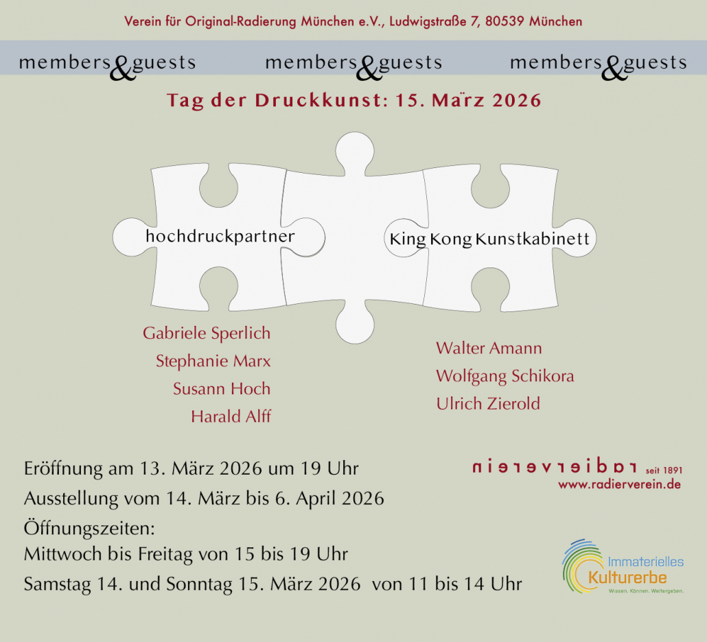 Die Hochdruckpartner stellen zusammen mit KingKongKunstkabinett im Verein für Original-Radierung München e.V. aus.